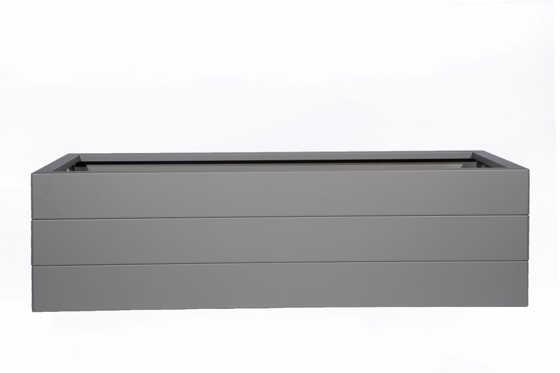 De taupekleurige modulaire plantenbak van gepoedercoat staal straalt rust, zachtheid en verfijning uit. De natuurlijke tint vormt de perfecte balans tussen grijs en bruin en past moeiteloos in elke buitenruimte.
