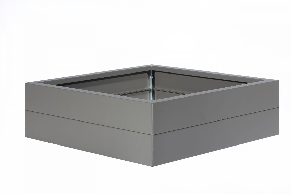 De taupekleurige modulaire plantenbak van gepoedercoat staal straalt rust, zachtheid en verfijning uit. De natuurlijke tint vormt de perfecte balans tussen grijs en bruin en past moeiteloos in elke buitenruimte.