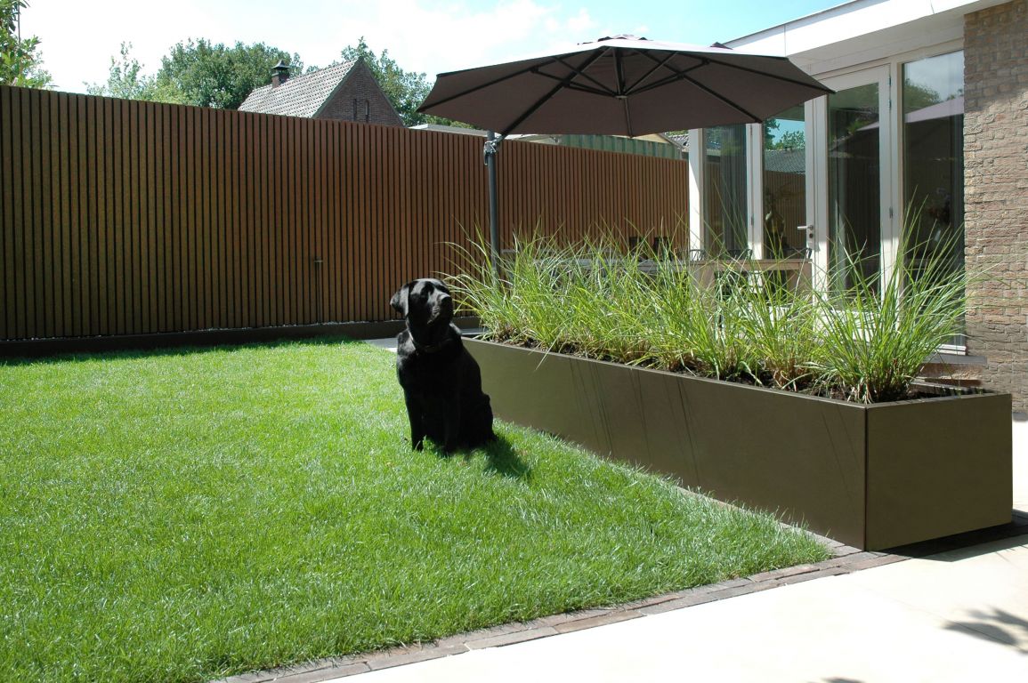 In supra bruin straalt de bak warmte en elegantie uit. De kleur doet denken aan aarde en brons en sluit prachtig aan bij hout, steen en groene beplanting. De matte poedercoating beschermt het staal tegen krassen en weersinvloeden en zorgt dat de rijke, bruine tint zijn karakter behoudt, jaar na jaar.